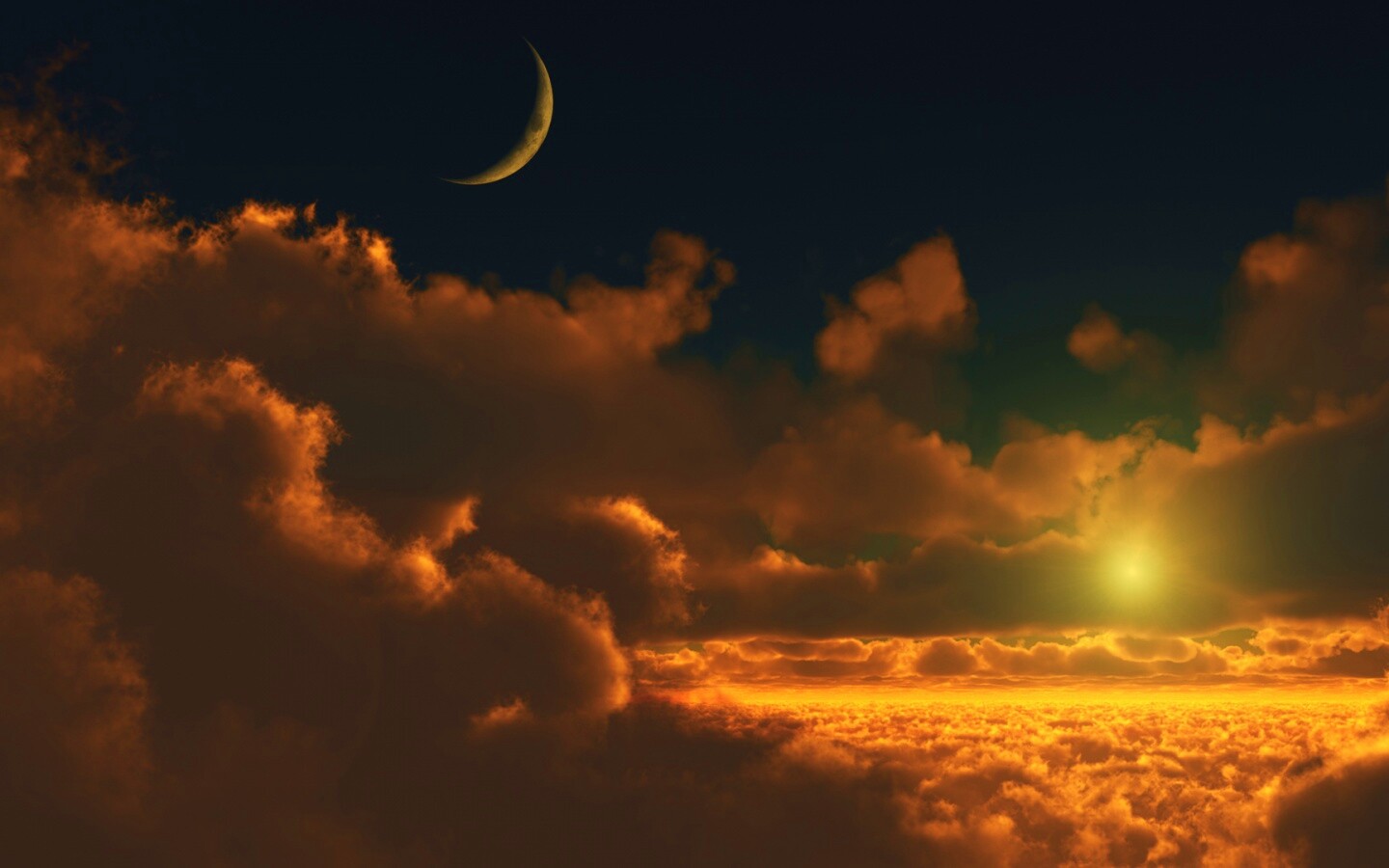 «Закат и месяц над облаками»