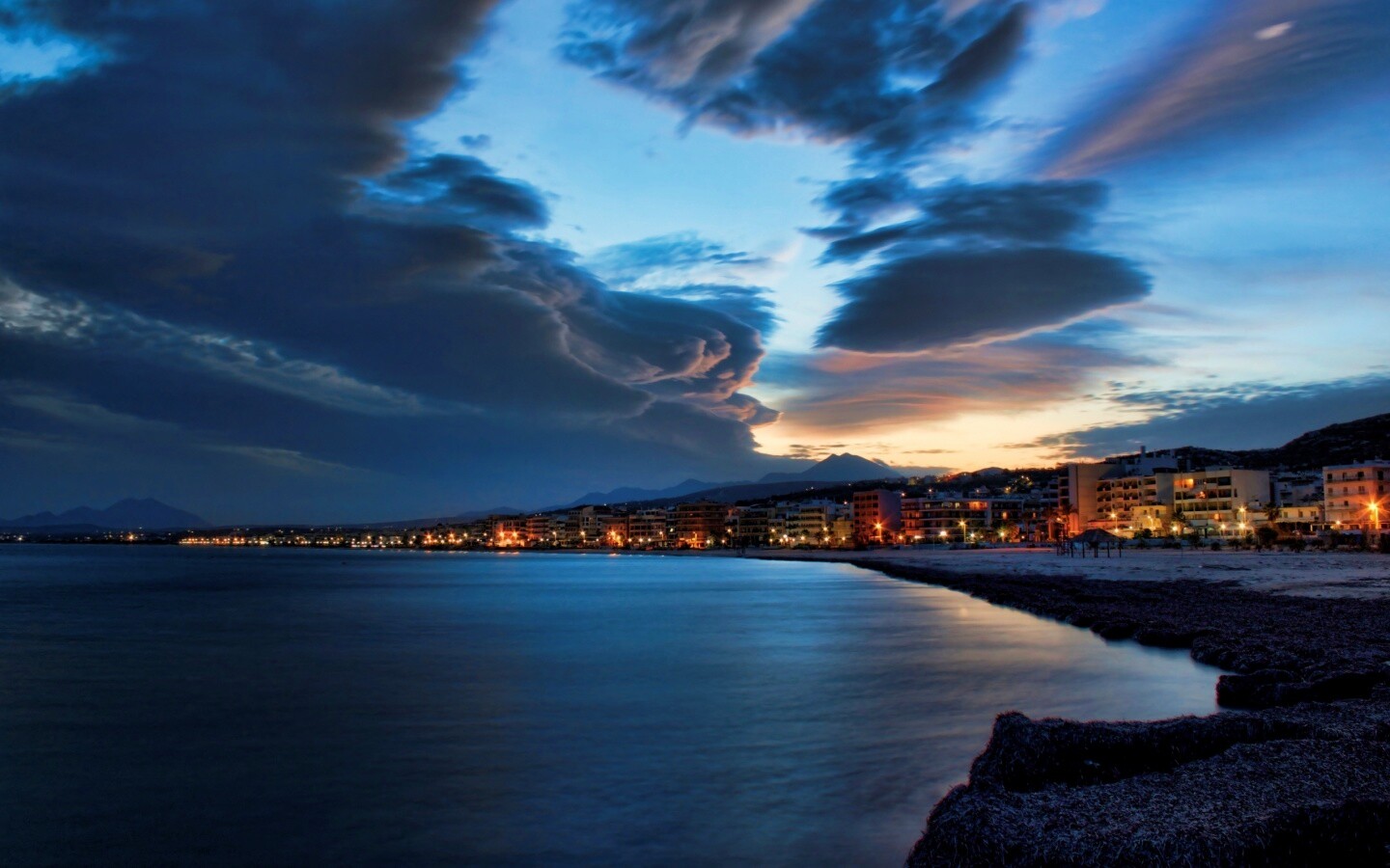 «Красивый закат над городом у моря»