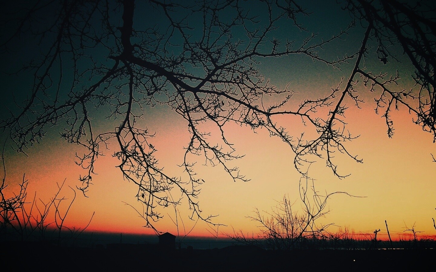 «Закат сквозь ветки деревьев»