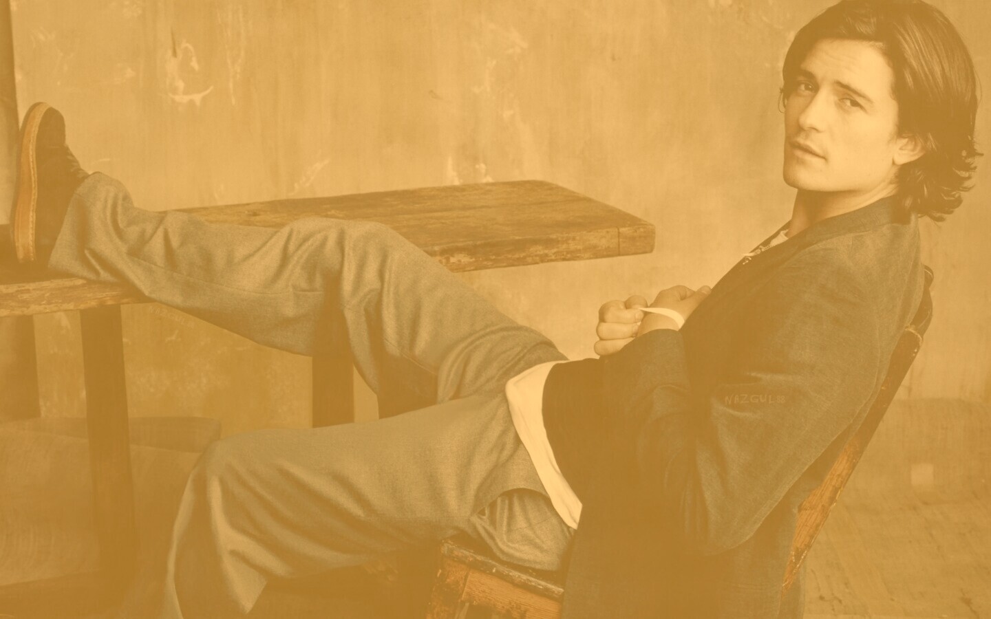 Обои для рабочего стола «Орландо Блум» 1440х900 с фильтром kelvin (оригинал 1920х1080)