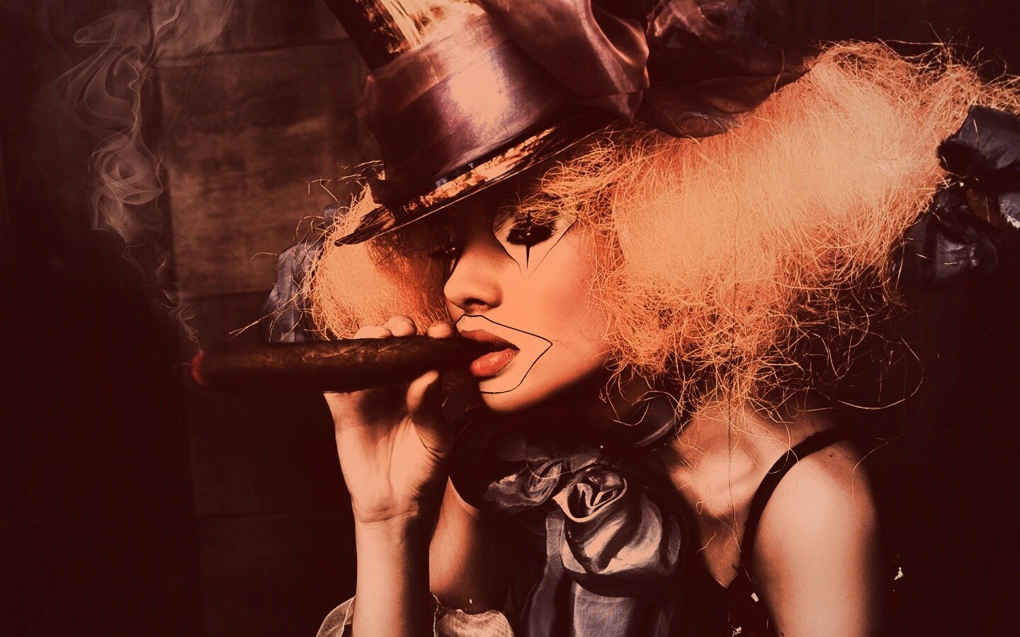 «Девушка клоун курит сигару»