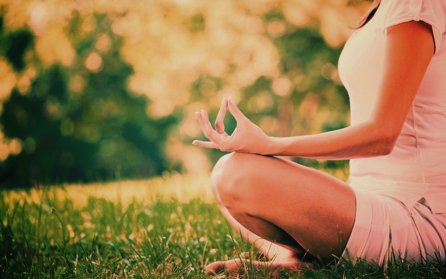 «Девушка медитирует в позе лотоса на траве»