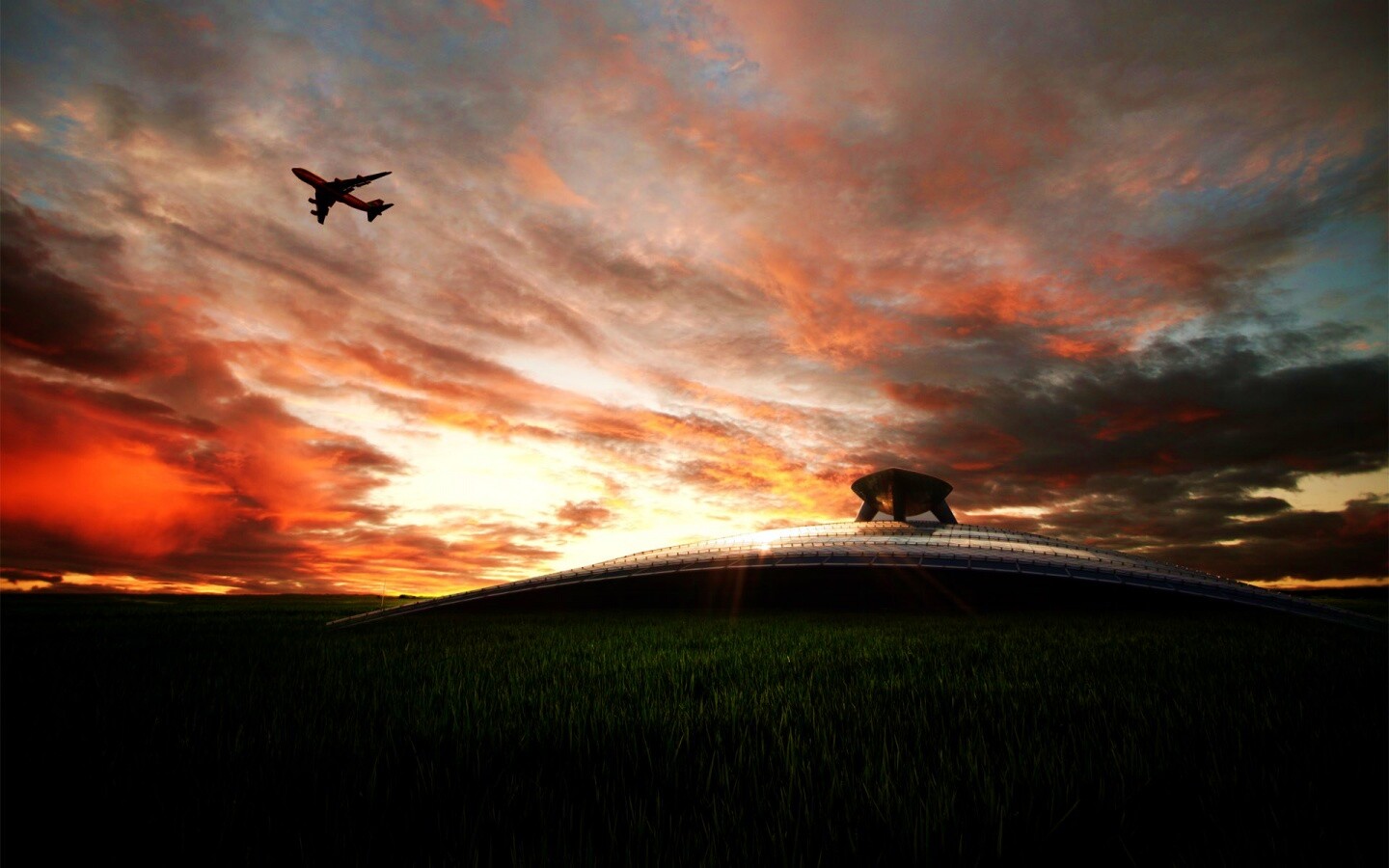 «Самолет в закатном небе»
