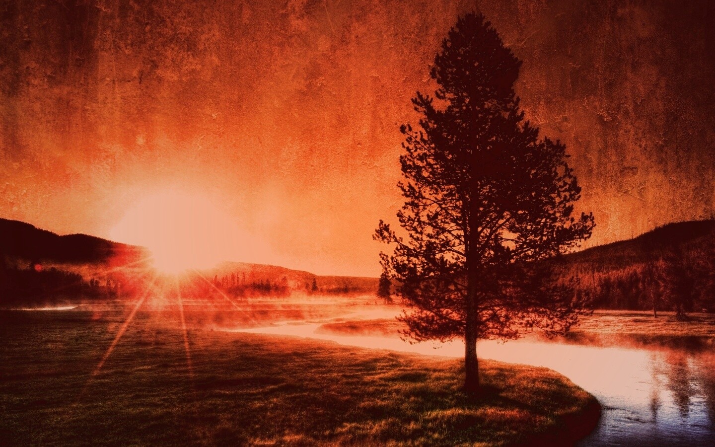 Обои для рабочего стола «Закат за речкой» 1440х900 с фильтром toaster (оригинал 2560х1600)