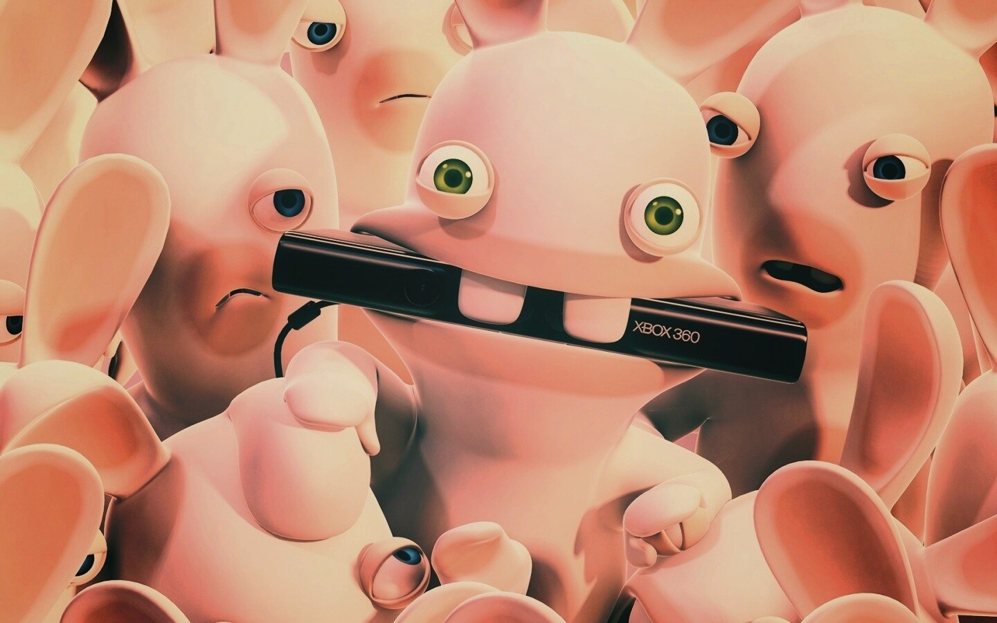Обои для рабочего стола «Кролик грызет кинект» 1440х900 с фильтром earlybird (оригинал 1920х1080)