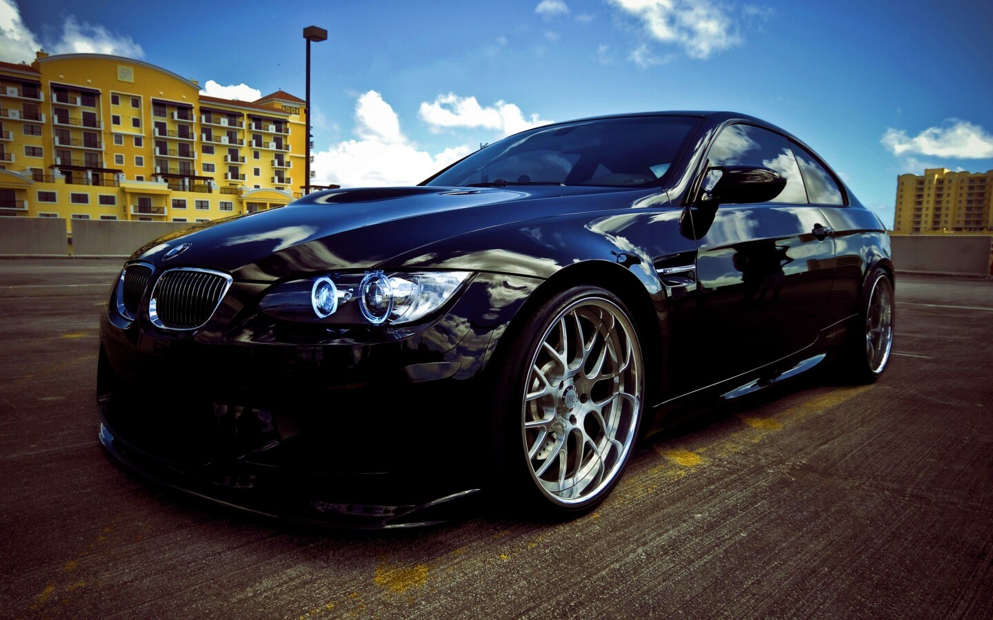 «Красивый черный BMW на парковке»