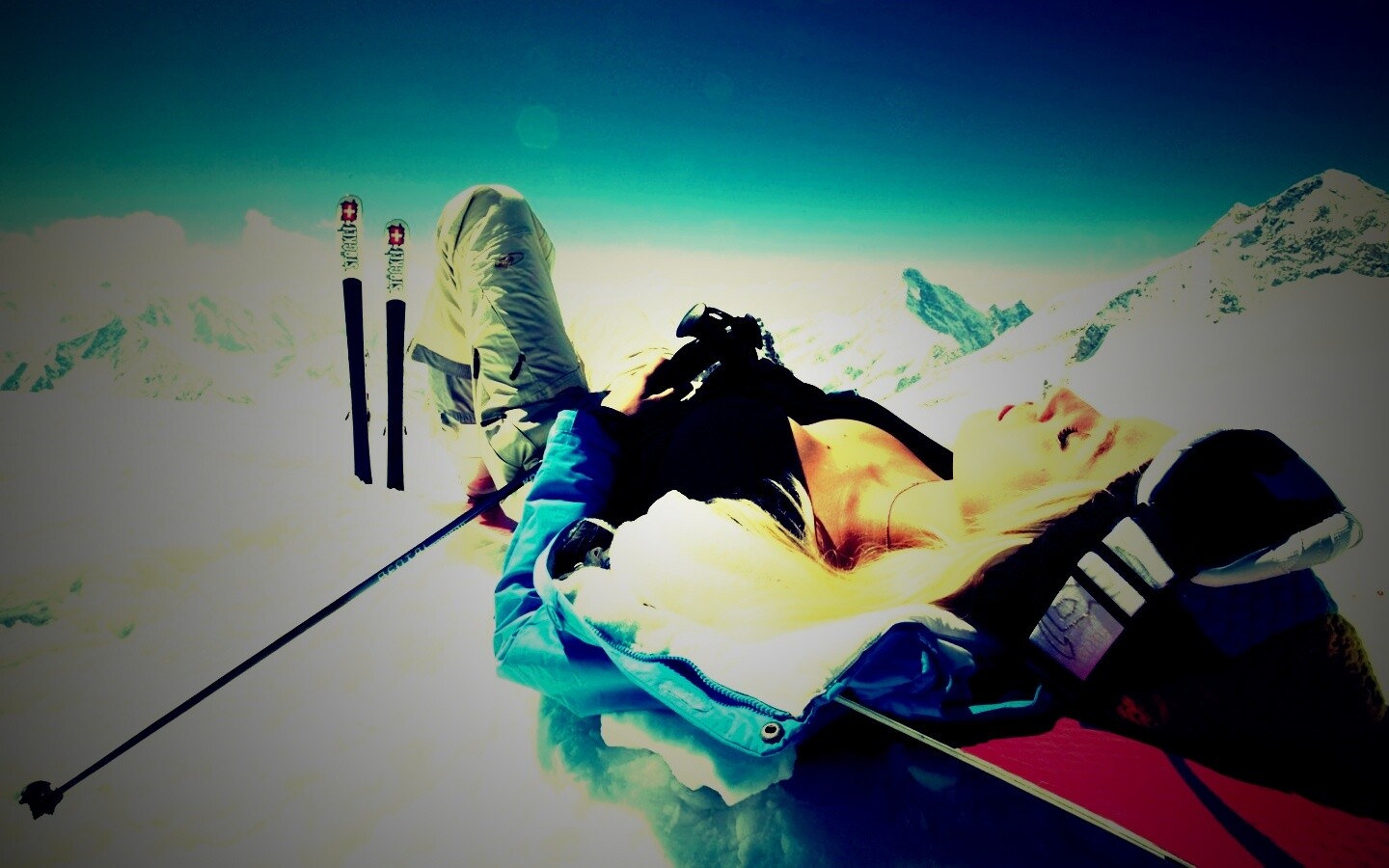 «Лыжница отдыхает в горах»