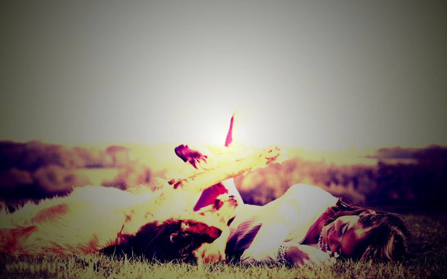 «Девушка и собака валяются на траве»