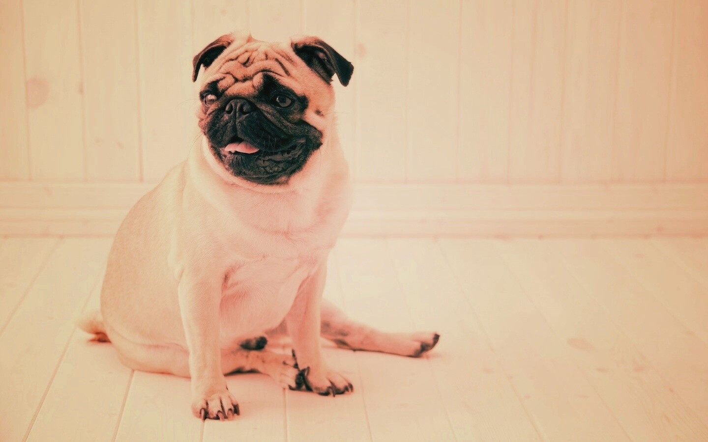 Обои для рабочего стола «Симпатичный мопс на полу» 1440х900 с фильтром earlybird (оригинал 1920х1200)