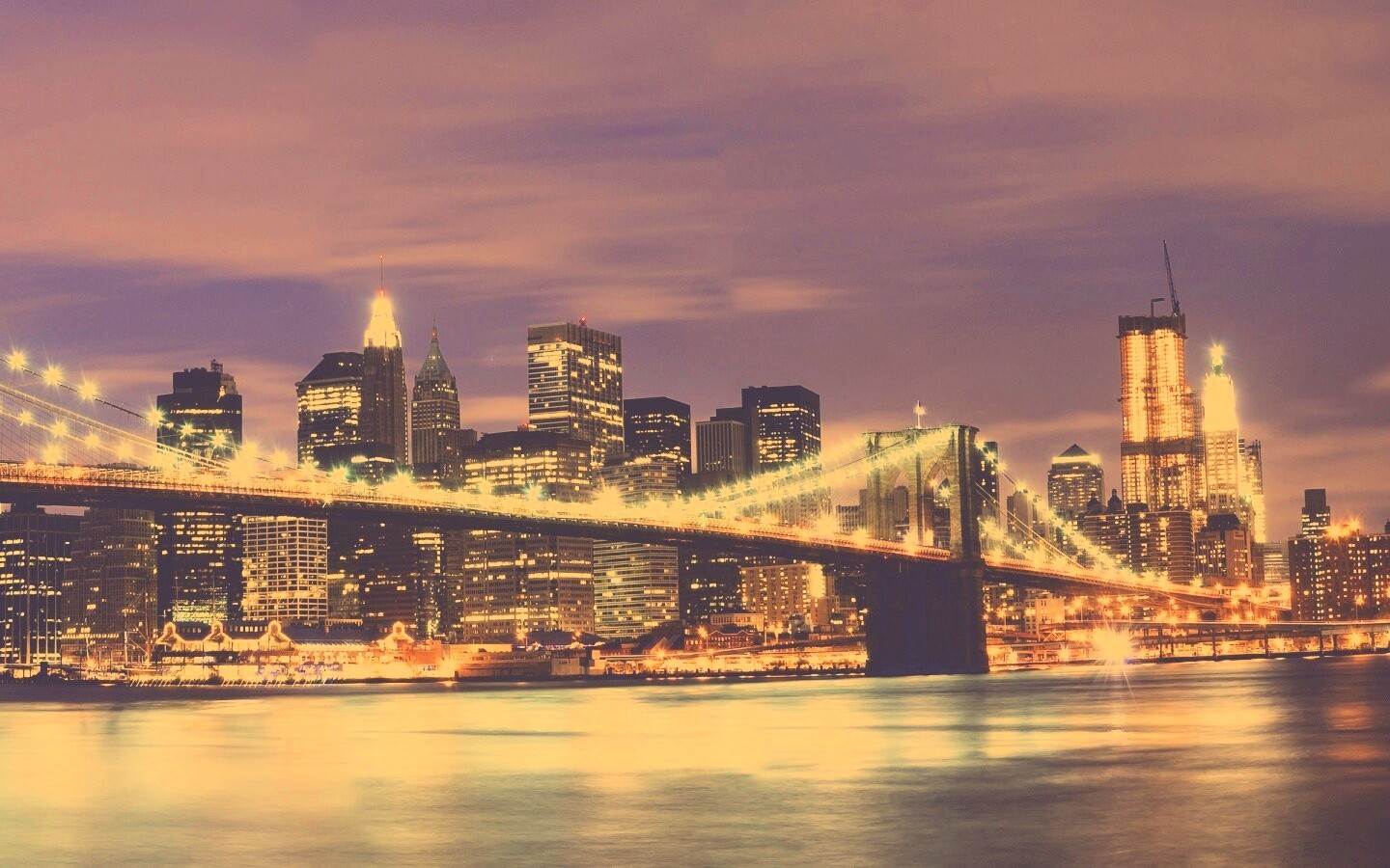 «Бруклинский мост на фоне ночного Нью-Йорка»