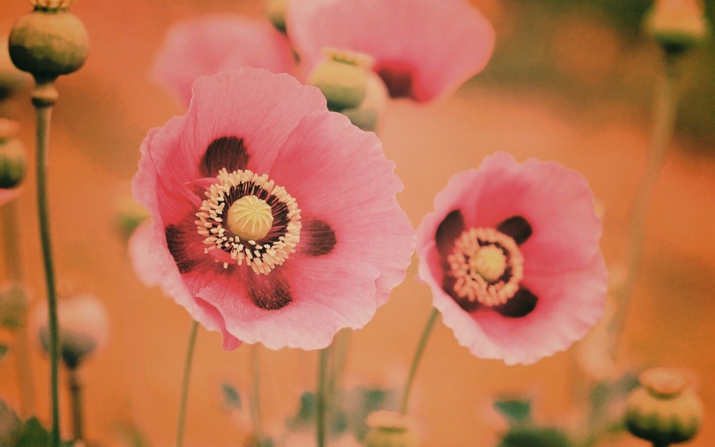 Обои для рабочего стола «Розовые маки» 1440х900 с фильтром earlybird (оригинал 3200х2000)