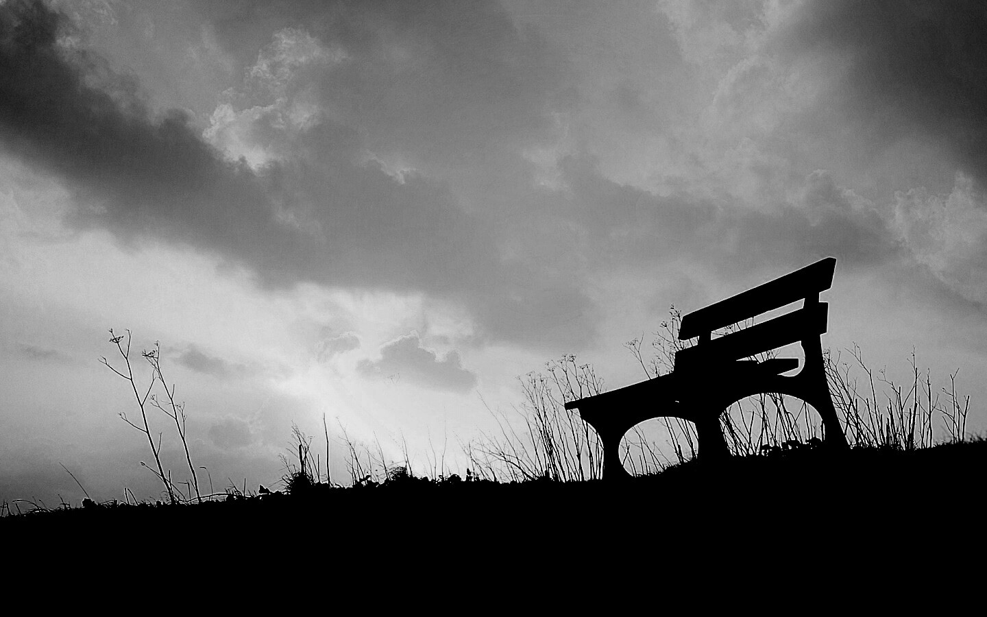 «Силуэт скамейки на фоне неба»