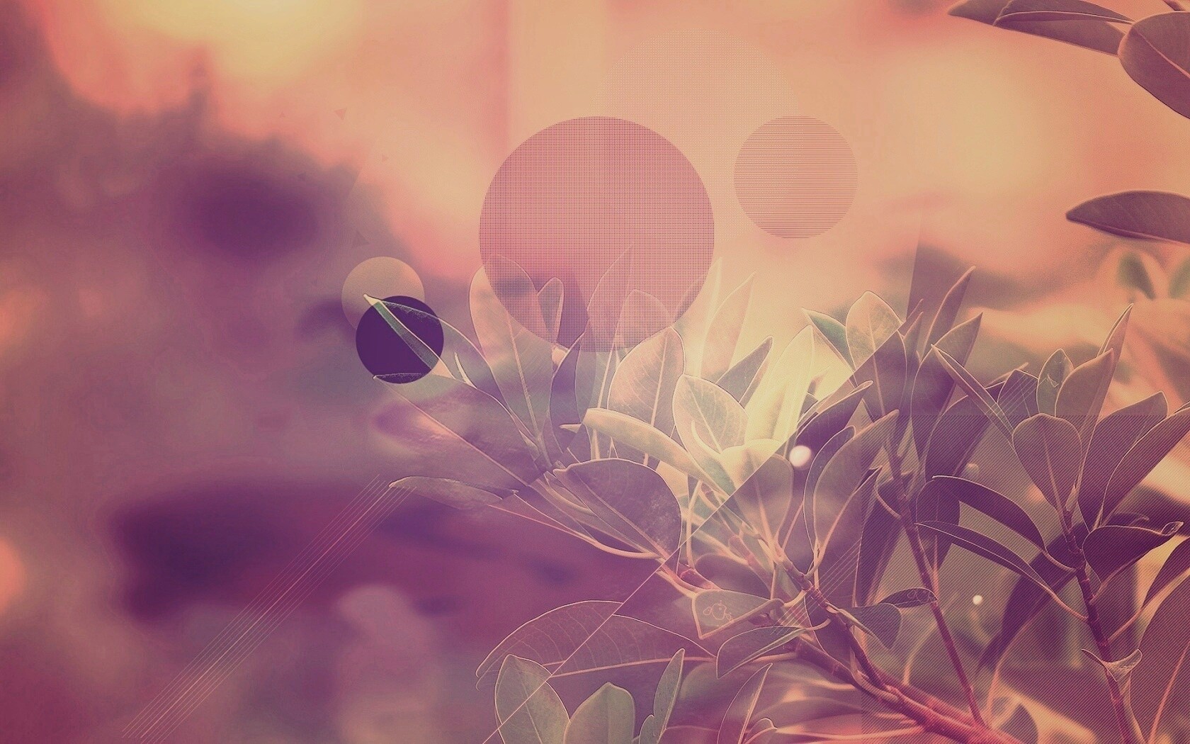 «Синий фильтр с кргуами на фото листьев»