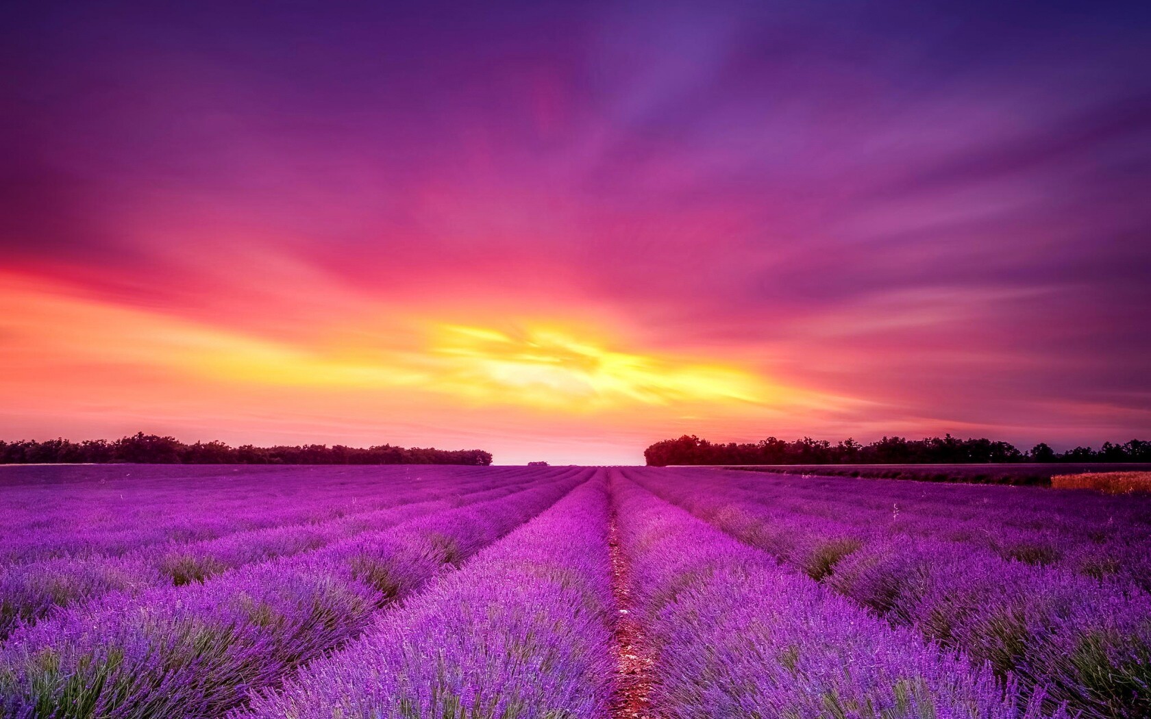«Поле фиолетовых цветов на закате»