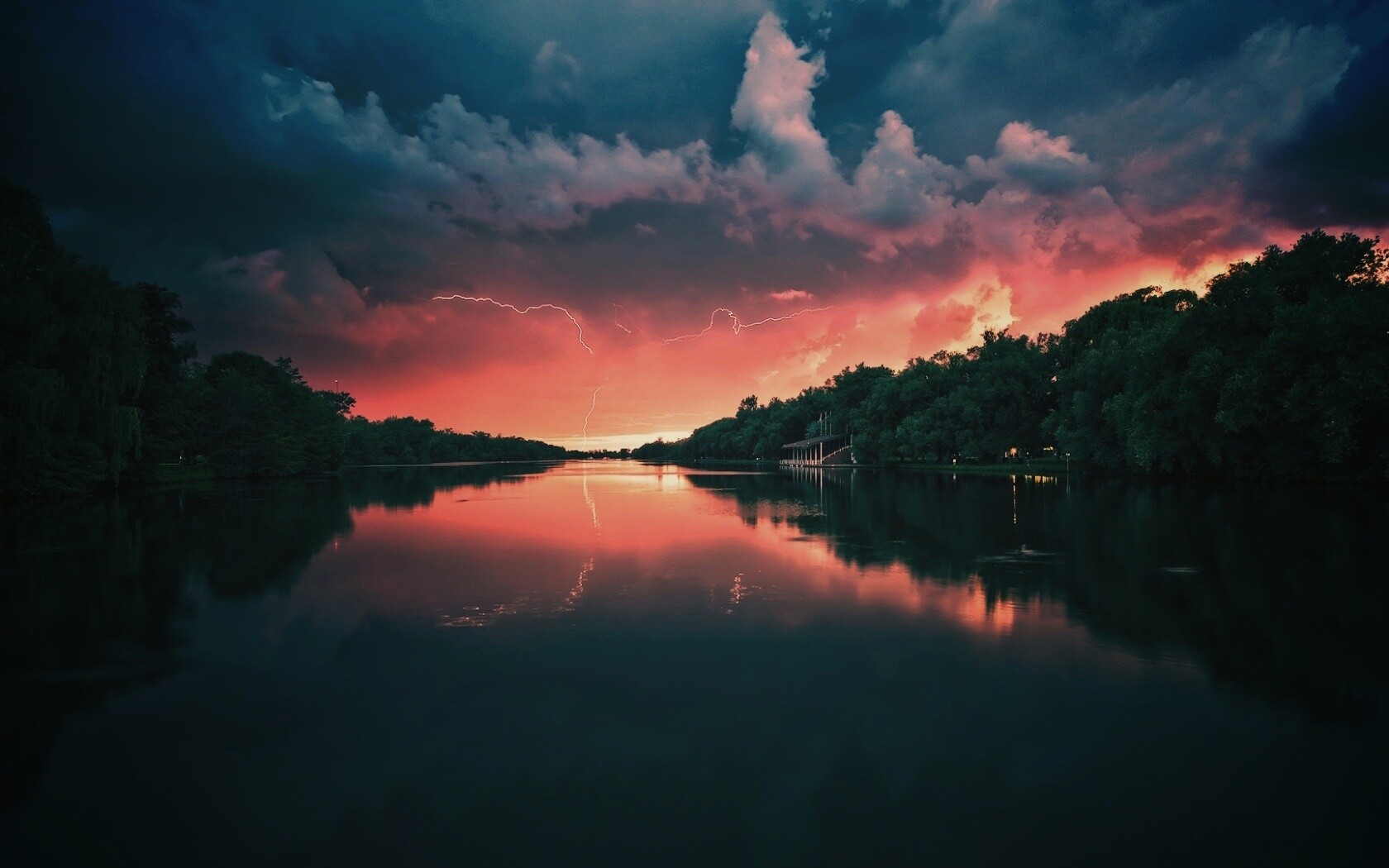 «Молнии на фоне заката, стандартные обои mac»