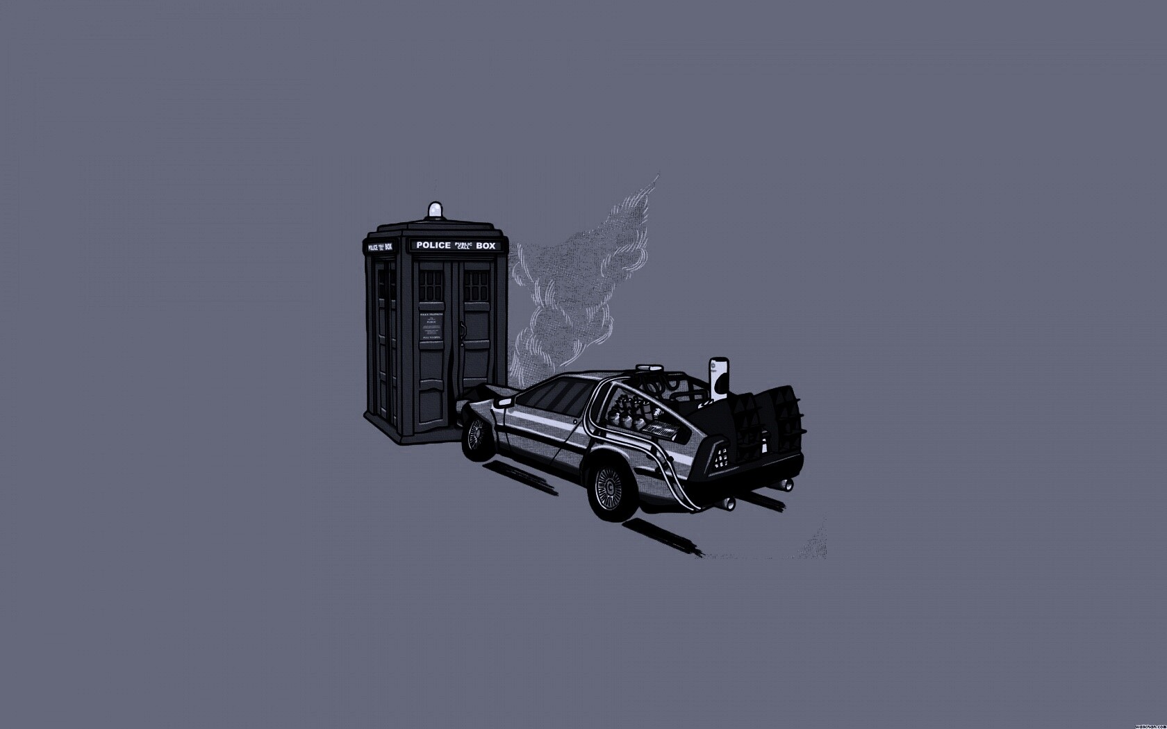 Обои для рабочего стола «Что будет если ДеЛореан врежется в Тардис?» 1680х1050 с фильтром gotham (оригинал 1920х1200)