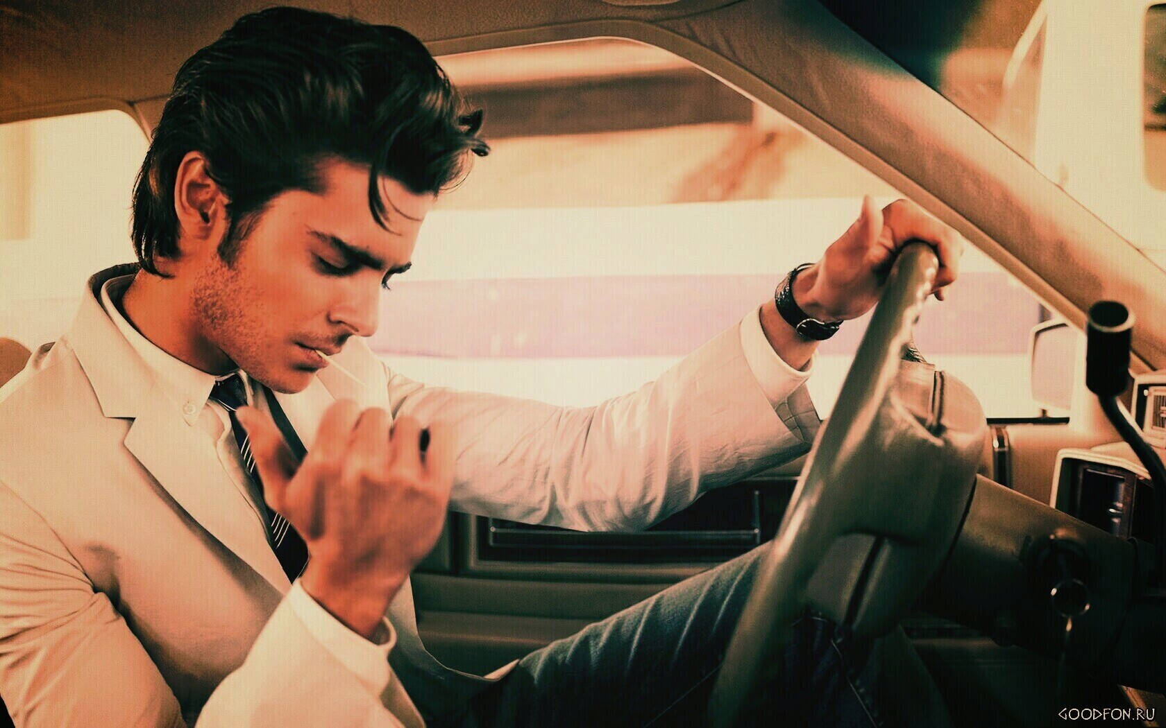 «Мужчина прикуривает в машине»