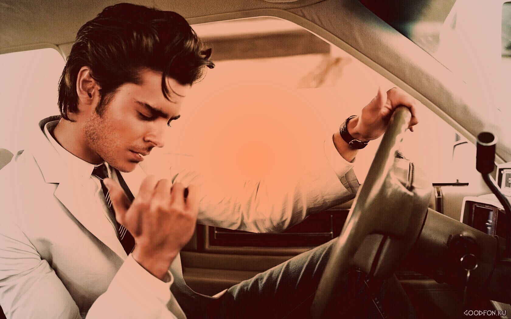 «Мужчина прикуривает в машине»