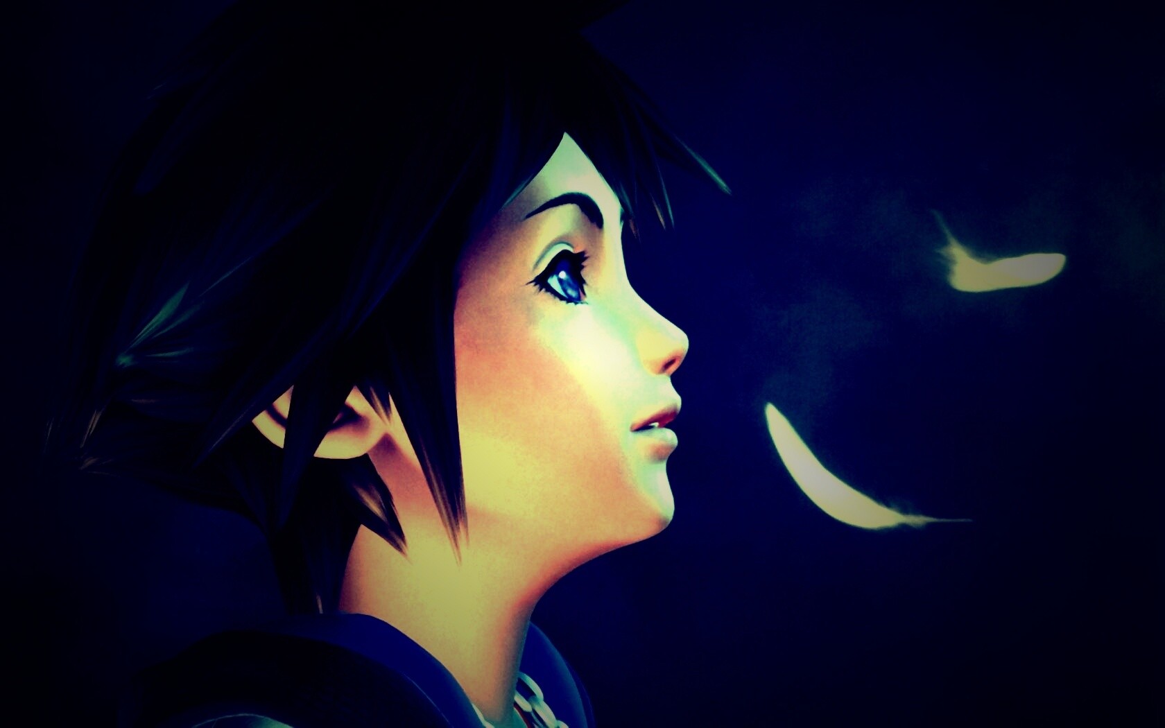 «Анимешный парень и белые перья»