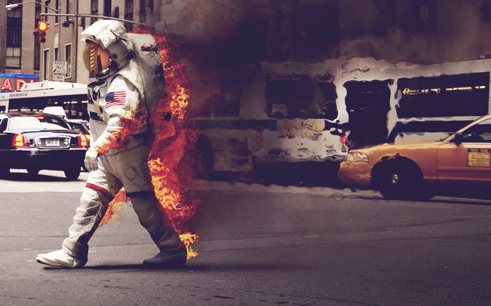 Обои для рабочего стола «Астронавт в огне» 1680х1050 (оригинал 1920х1200)