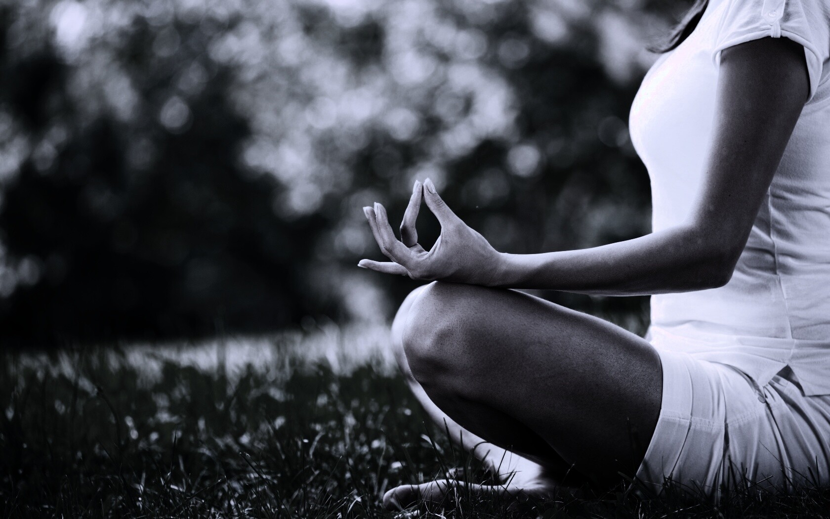 «Девушка медитирует в позе лотоса на траве»
