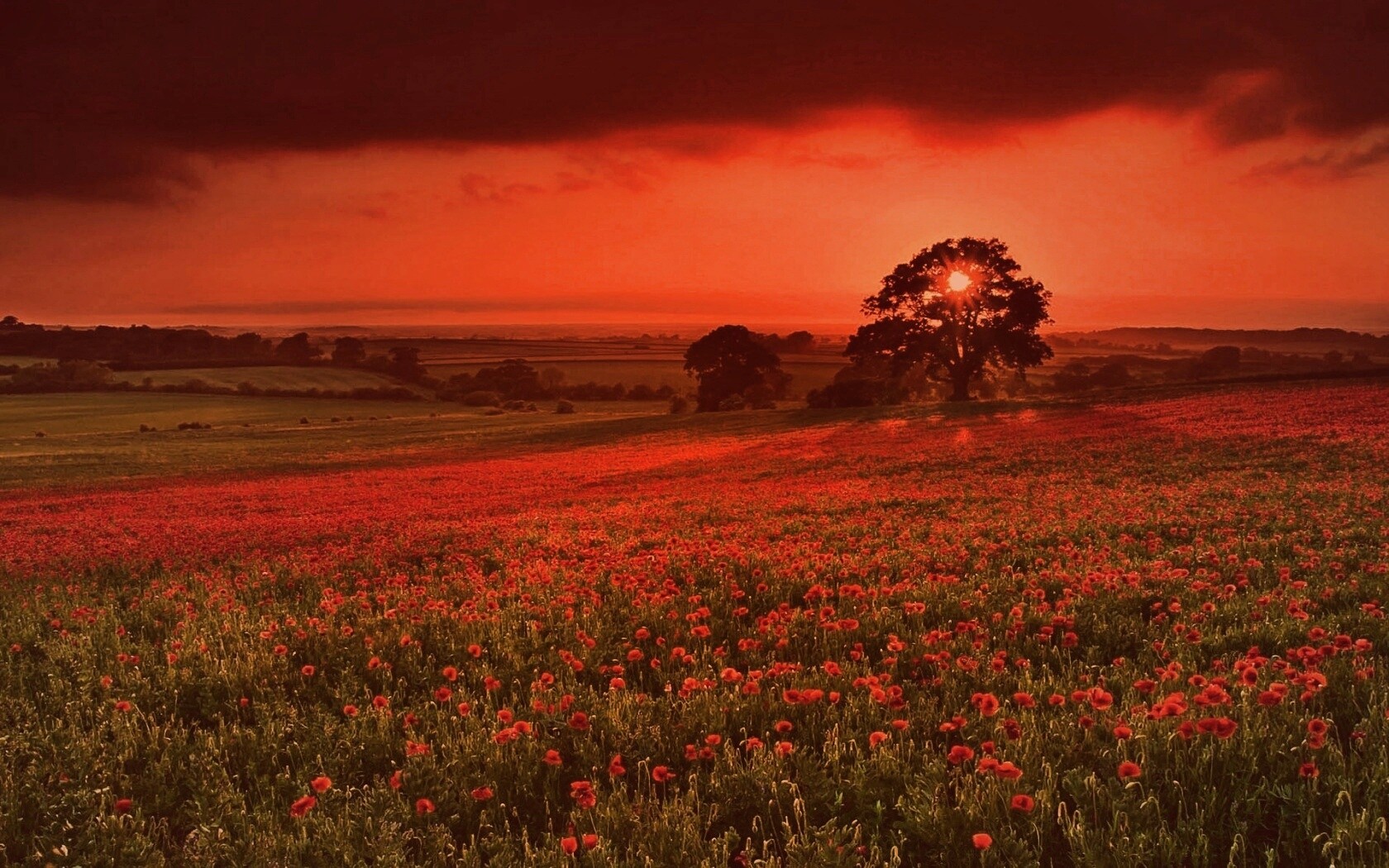 «Закат на поле красных цветов»