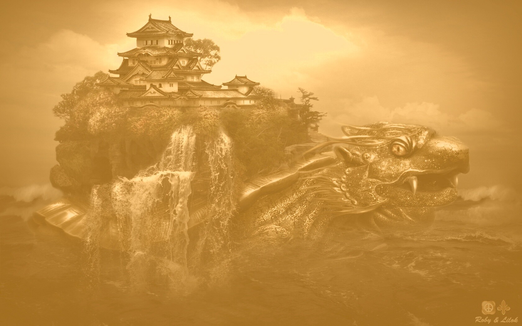 «Золотая черепаха и китайская пагода в океане»