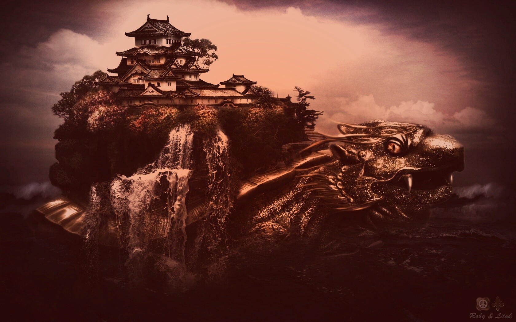 «Золотая черепаха и китайская пагода в океане»