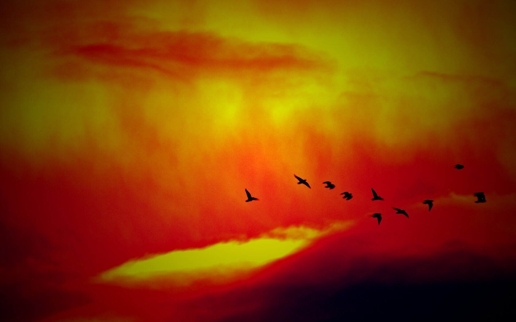 «Птицы летят в закатном небе»