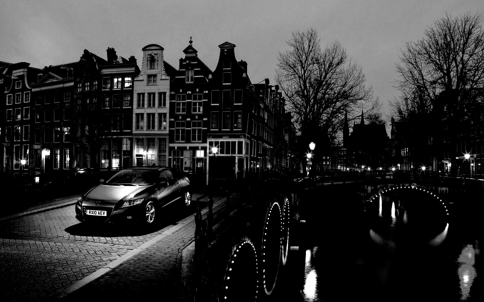 «Автомобиль на мосту в свете фонаря»