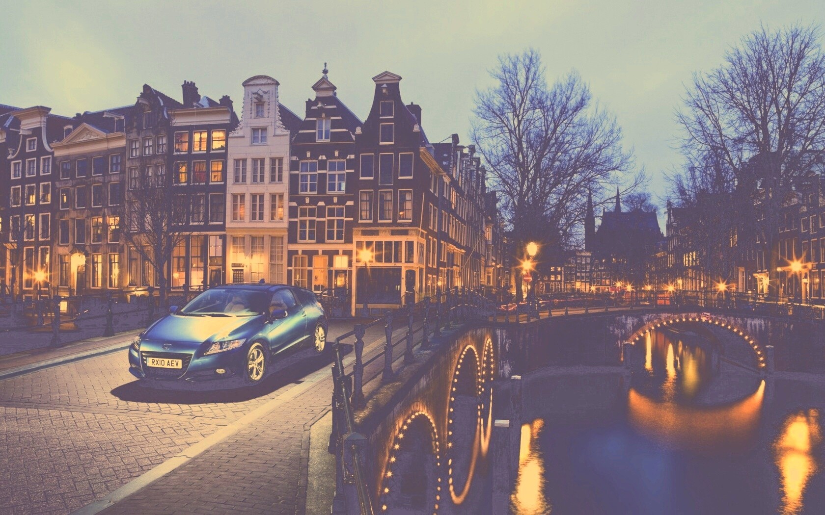 «Автомобиль на мосту в свете фонаря»