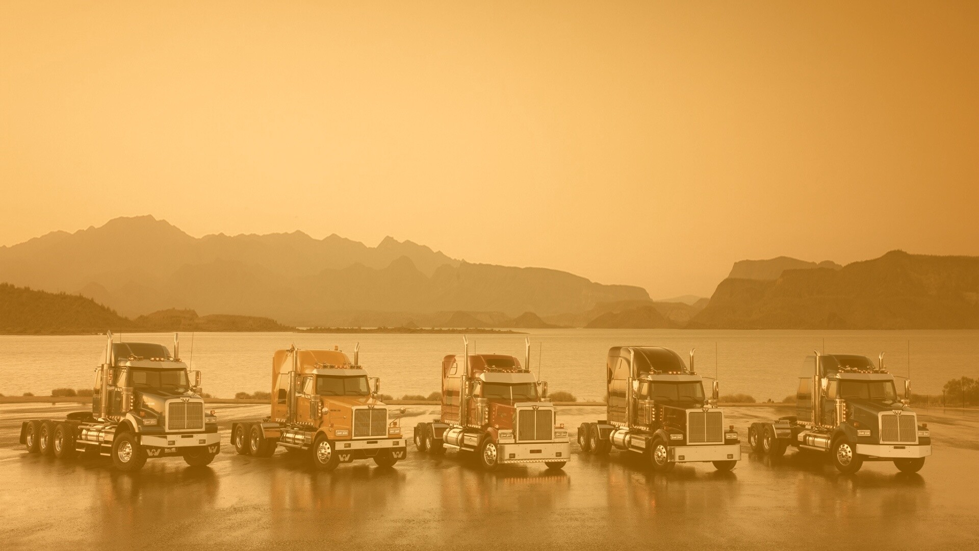 «Тягачи на фоне озера»
