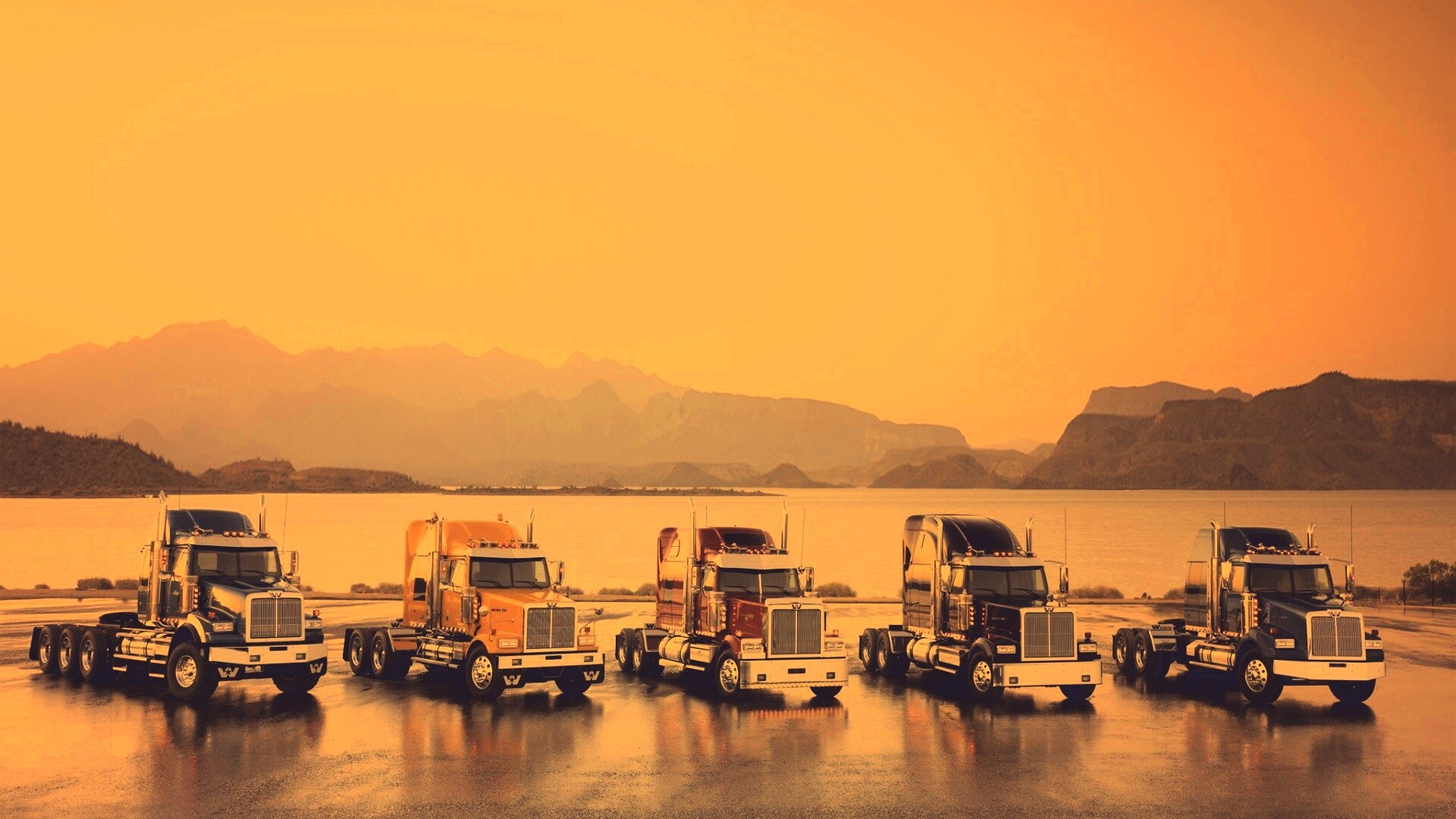 «Тягачи на фоне озера»