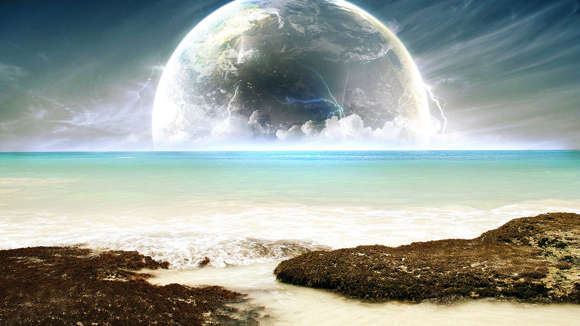 «Огромная луна над океаном»