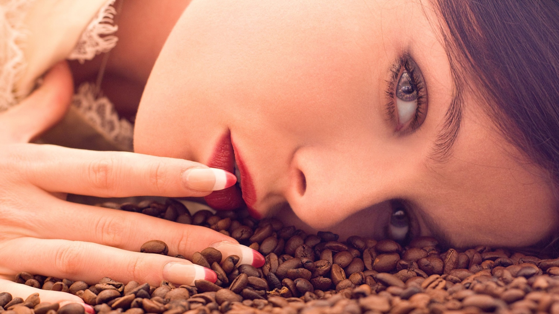 «Соблазнительная девушка с кофейными зернами»