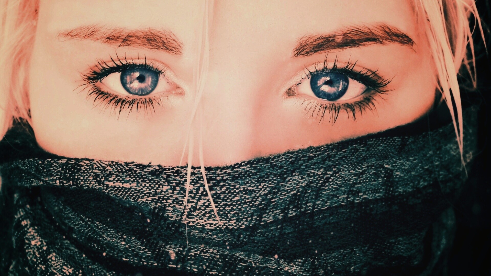 «Блондинка с шарфом на лице»