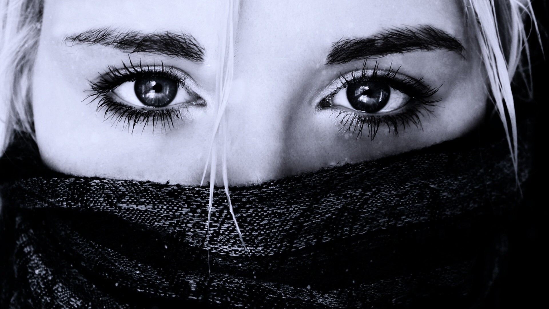 «Блондинка с шарфом на лице»