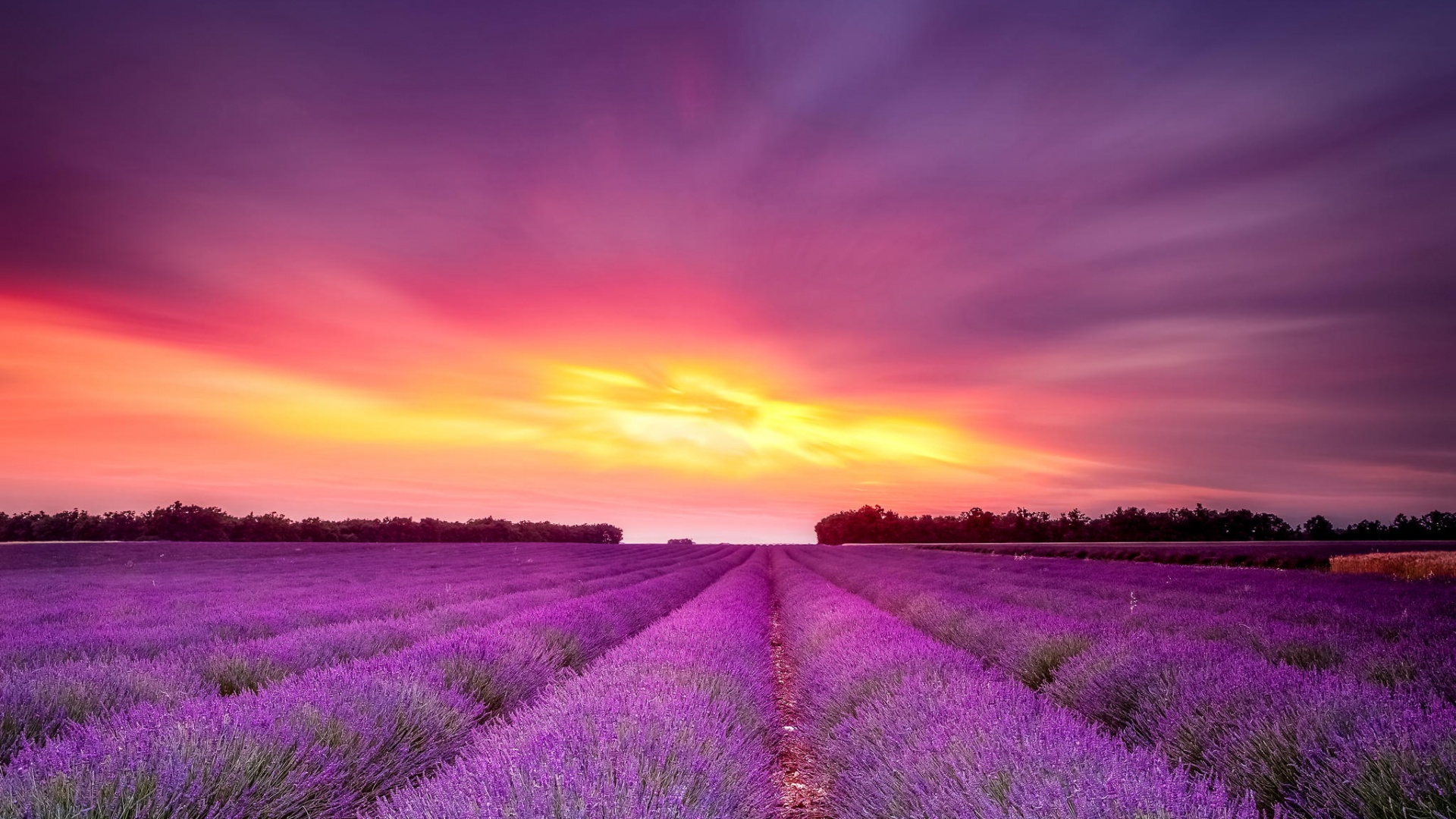 «Поле фиолетовых цветов на закате»