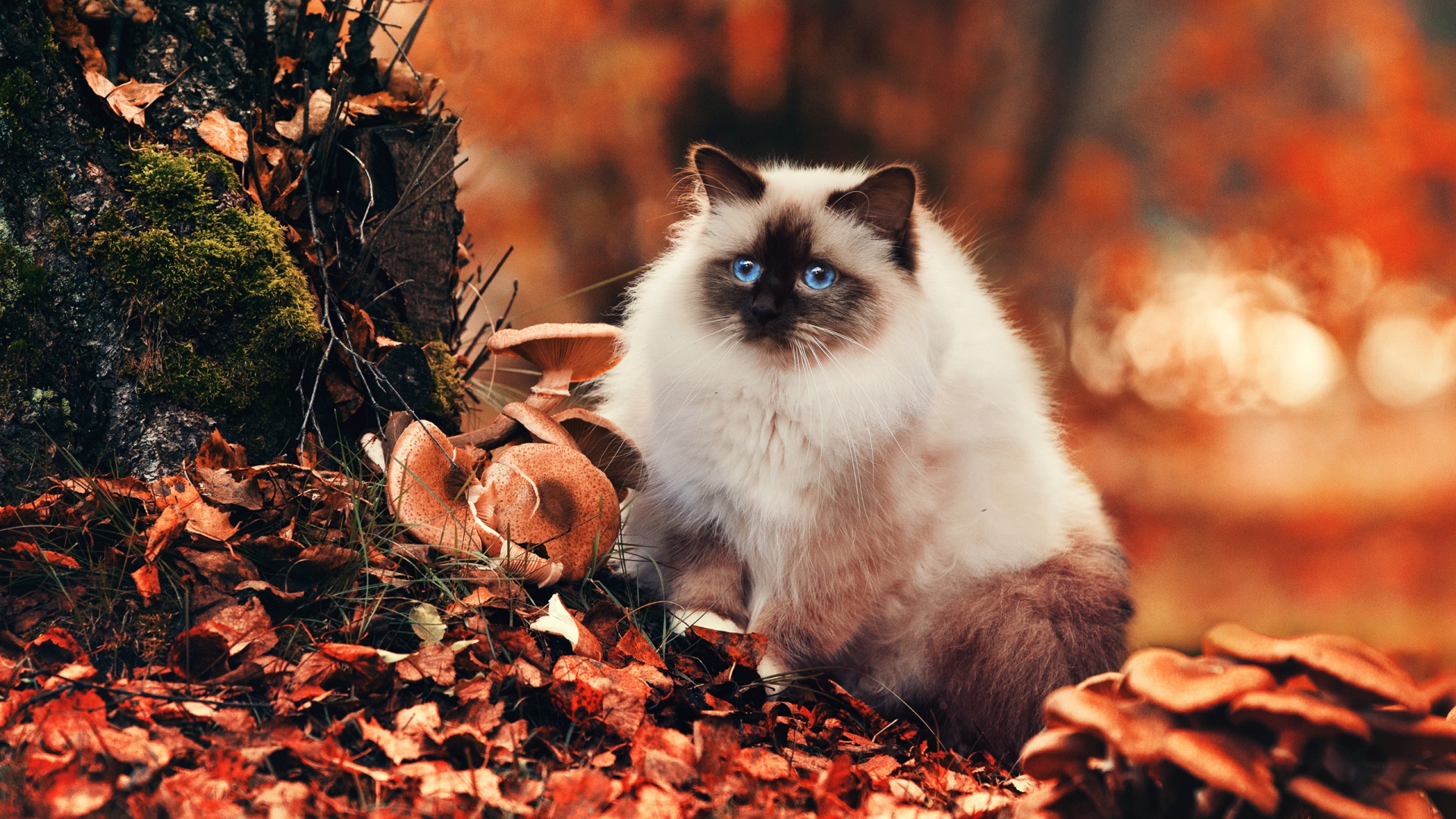 «Пушистый кот среди пожелтевшей листвы»
