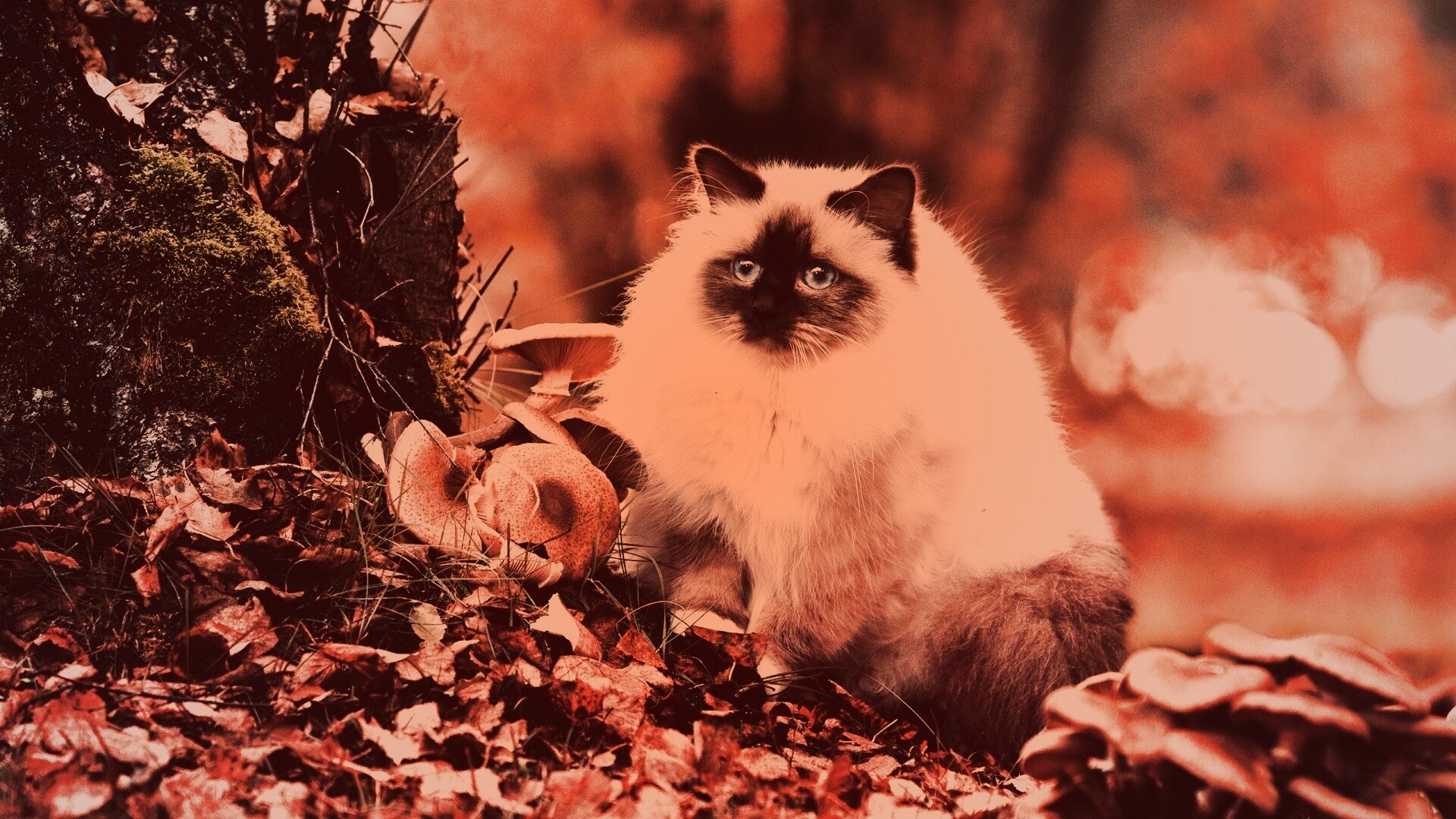 «Пушистый кот среди пожелтевшей листвы»