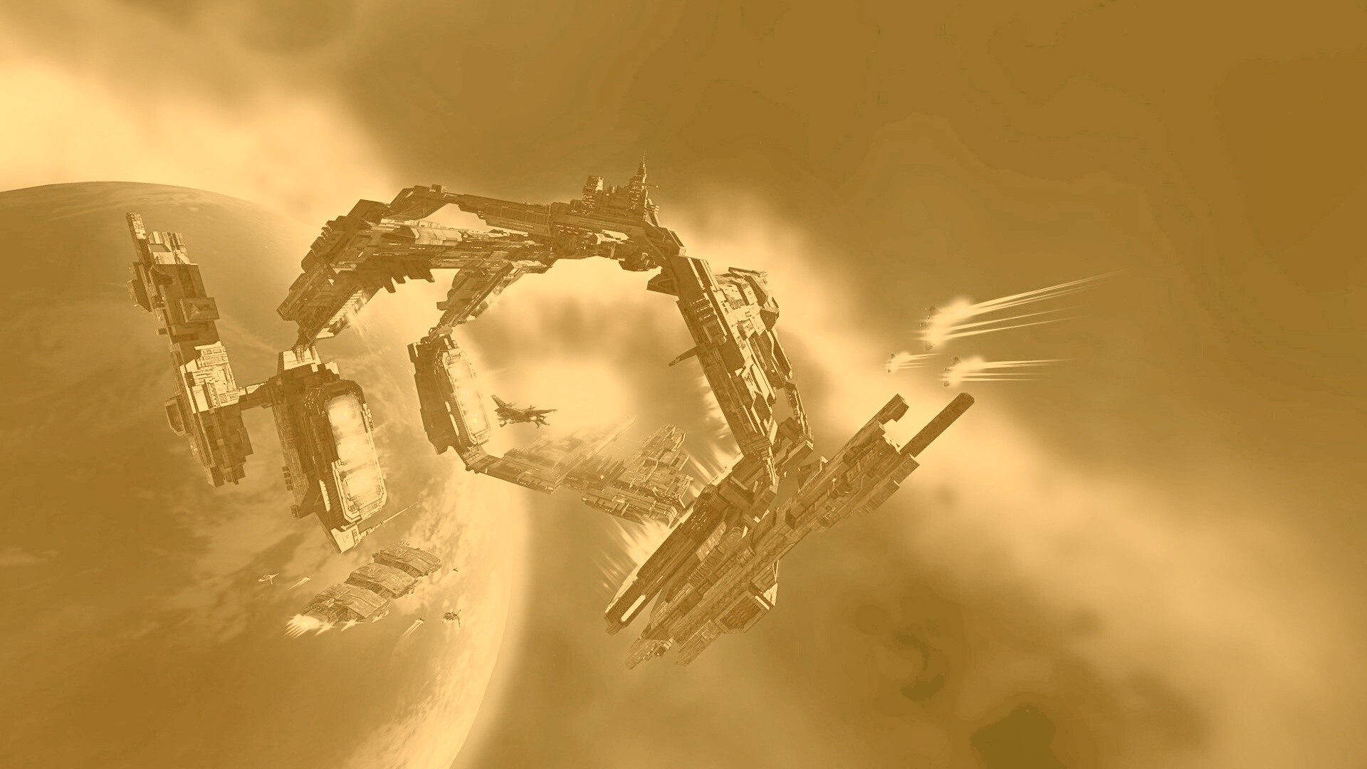 Обои для рабочего стола «Космический корабль» 1920х1080 с фильтром kelvin (оригинал 1920х1080)