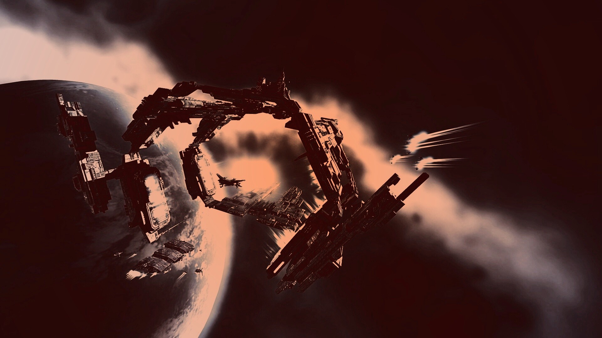 Обои для рабочего стола «Космический корабль» 1920х1080 с фильтром toaster (оригинал 1920х1080)