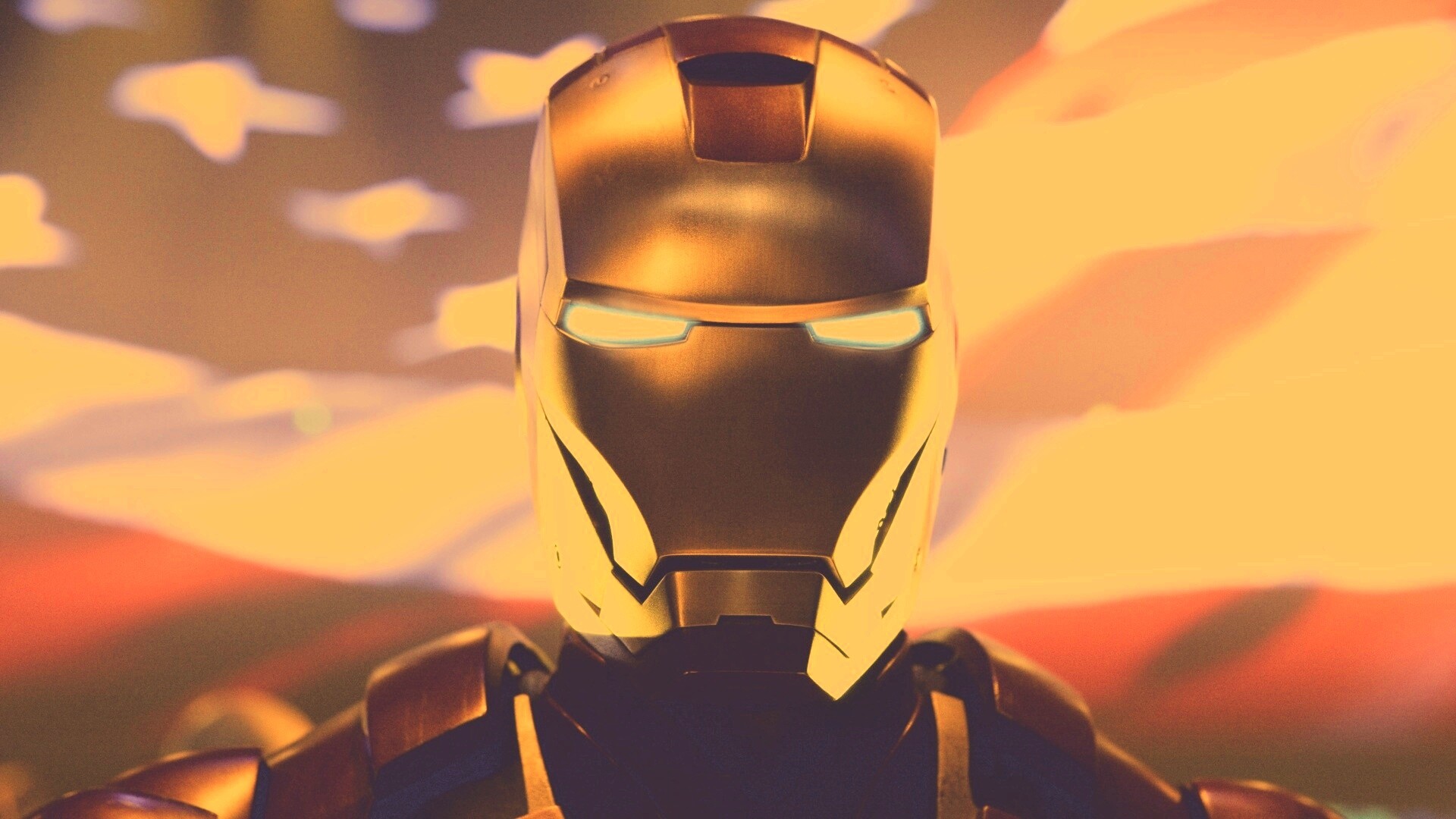 «Железный человек на фоне американского флага»