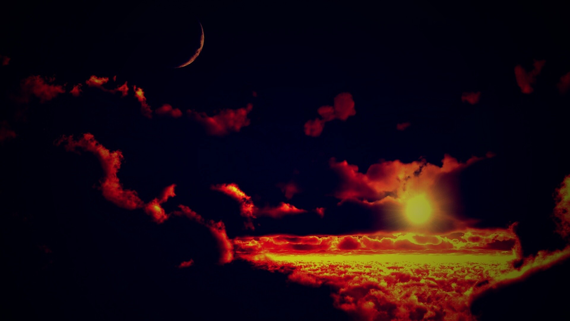 «Закат и месяц над облаками»
