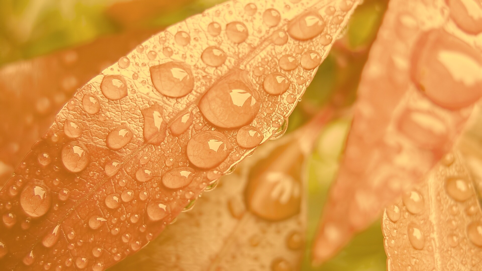 «Капли росы на красных листьях»