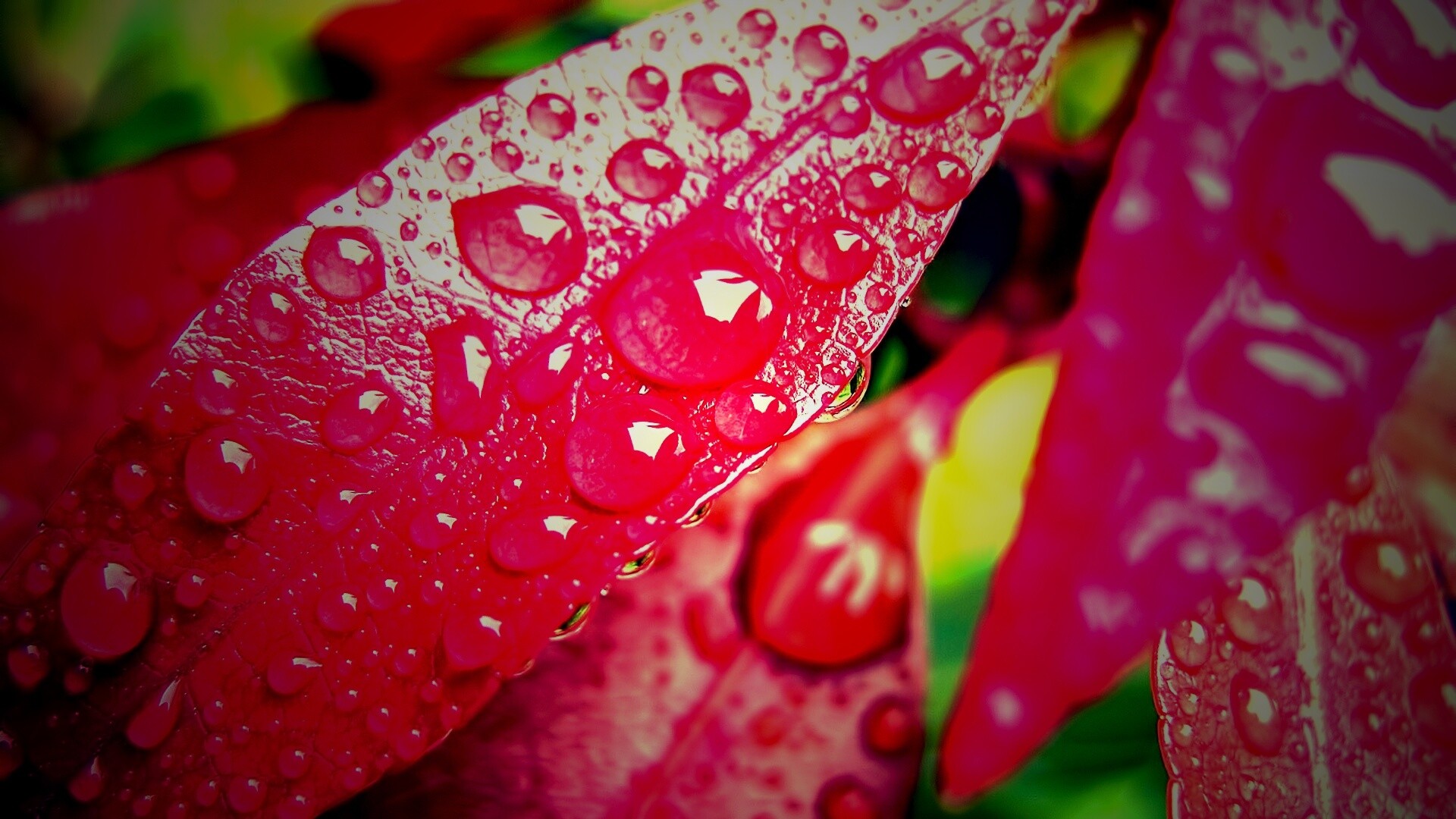 «Капли росы на красных листьях»