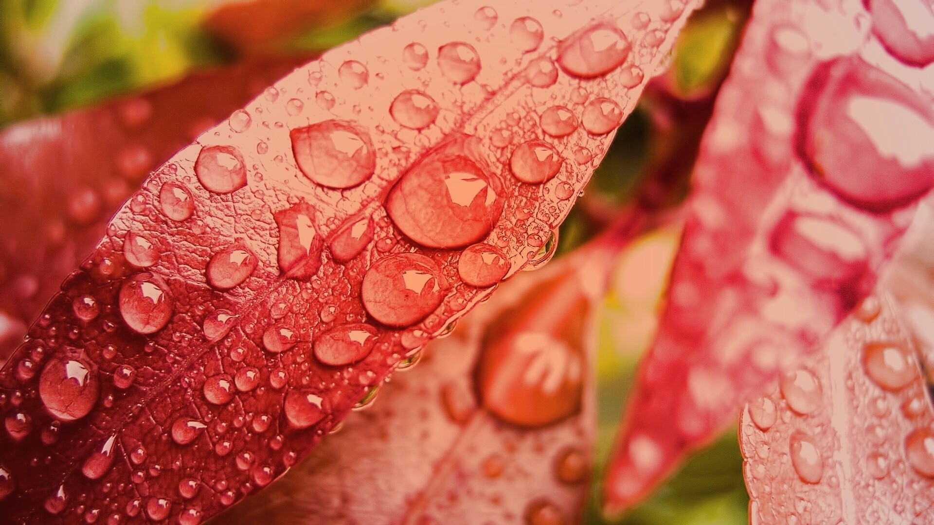 «Капли росы на красных листьях»