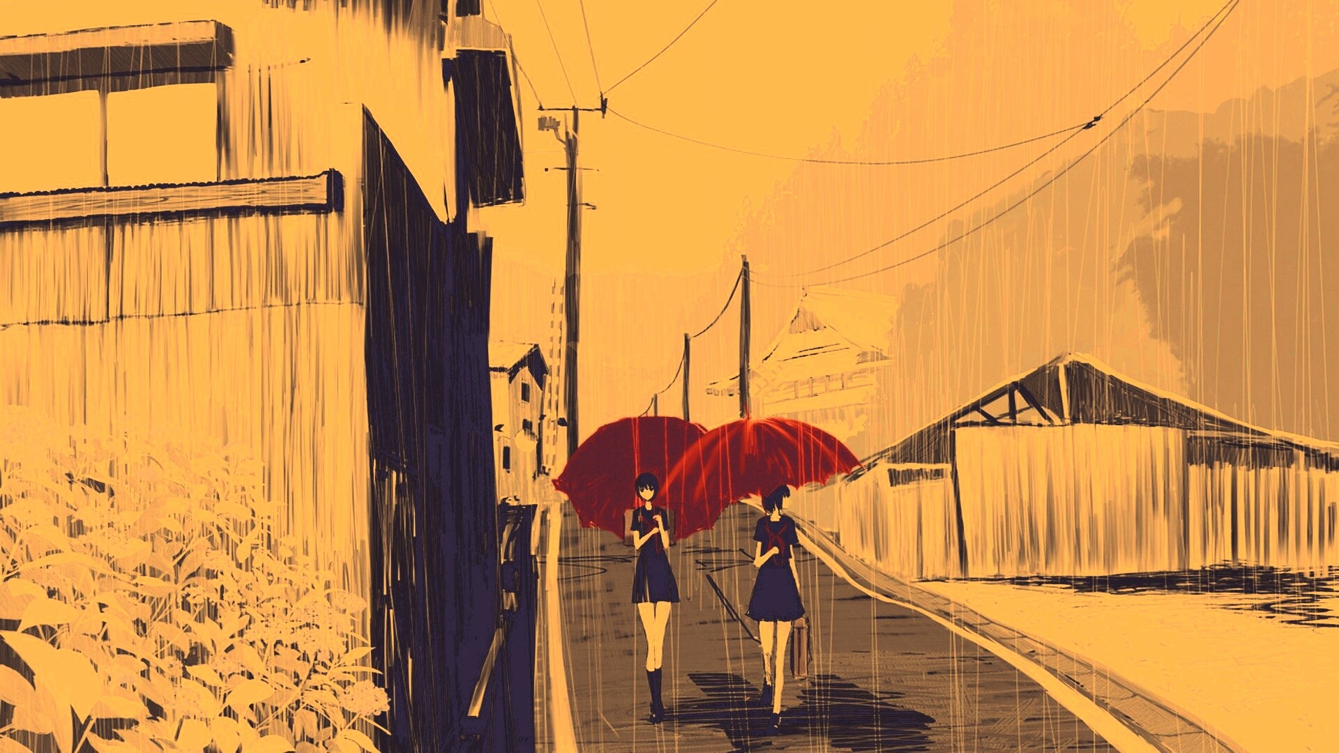 «Девушки с красными зонтами»