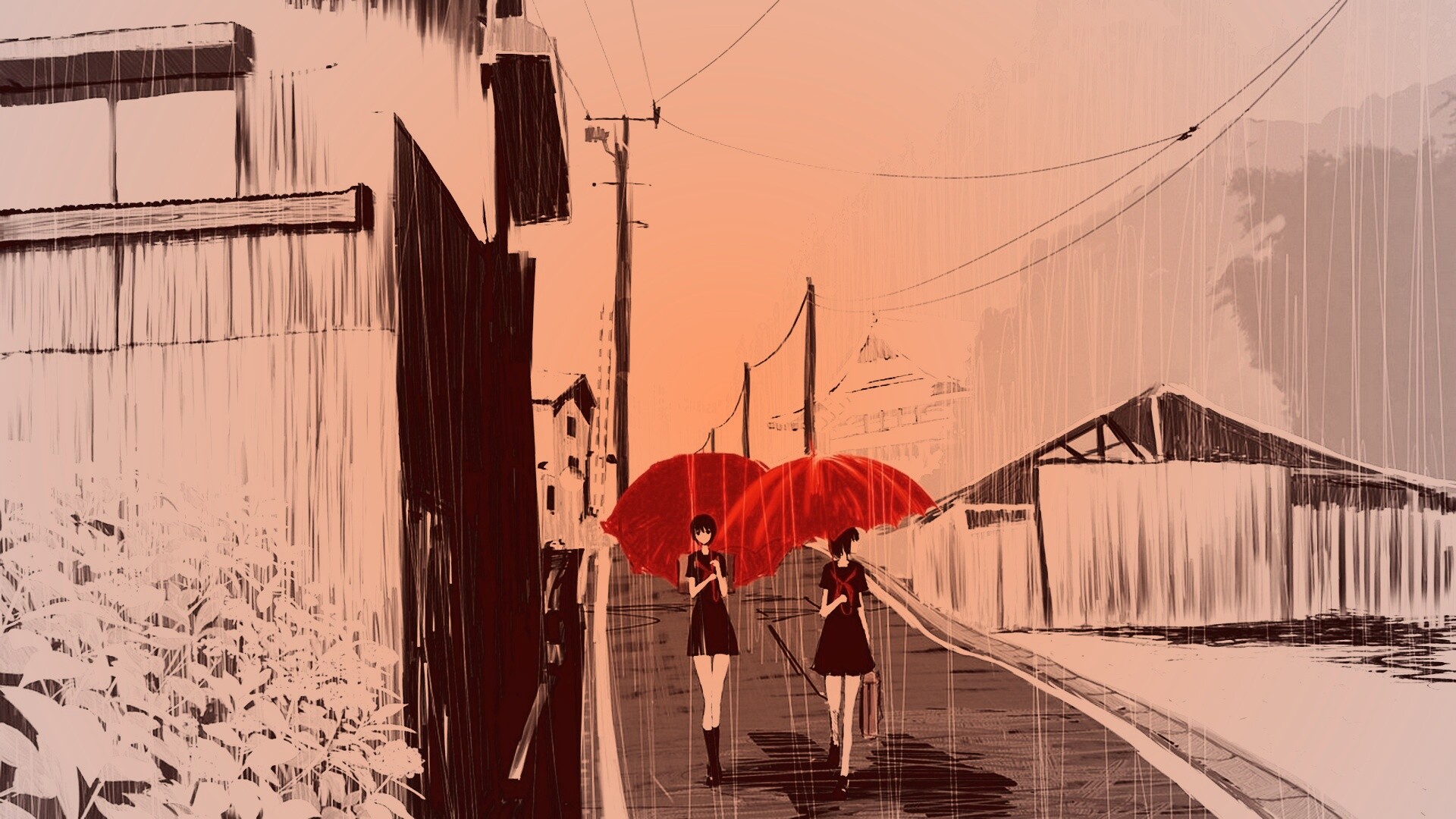 «Девушки с красными зонтами»
