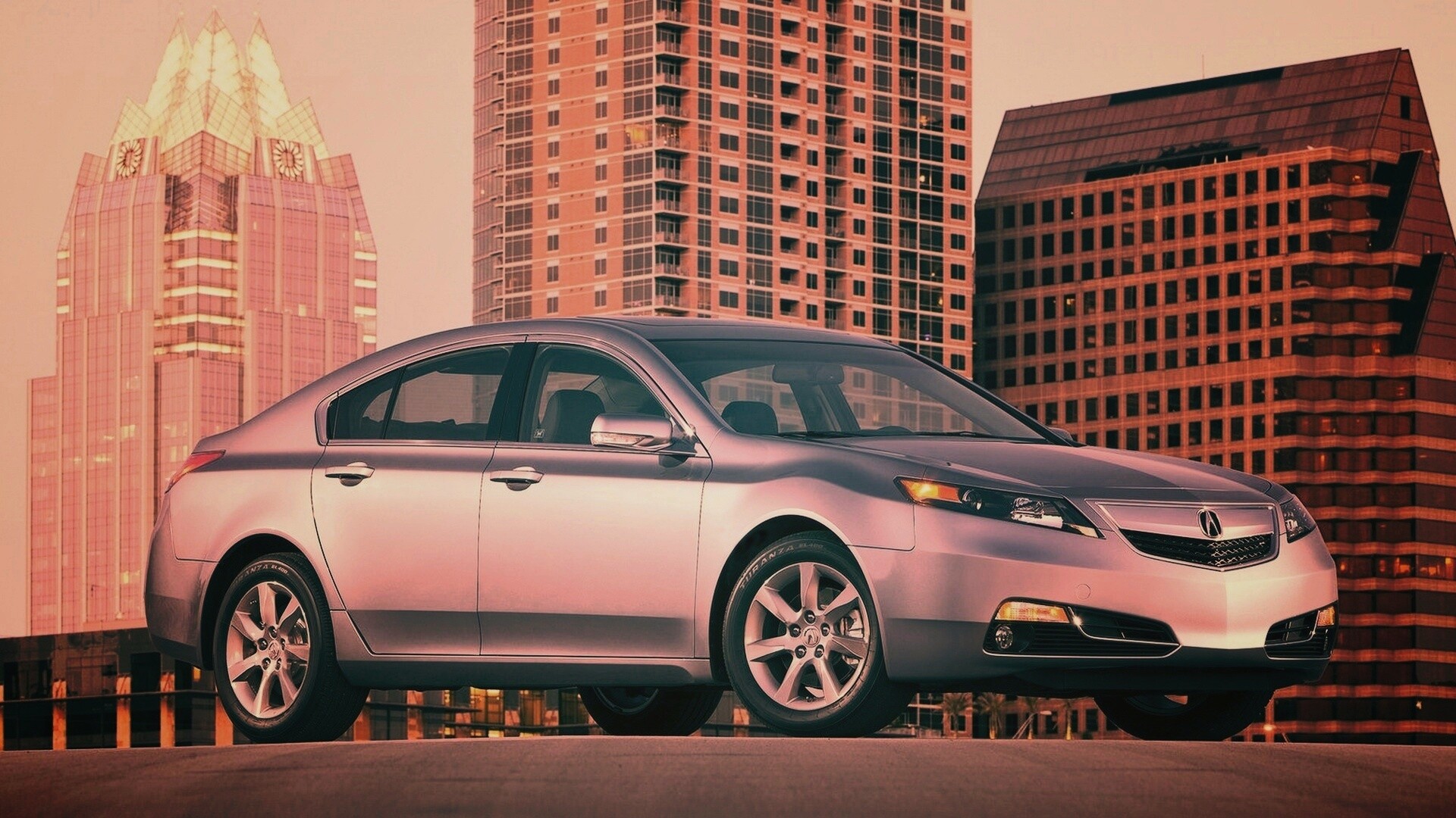 Обои для рабочего стола «Acura в городе» 1920х1080 с фильтром earlybird (оригинал 1920х1200)